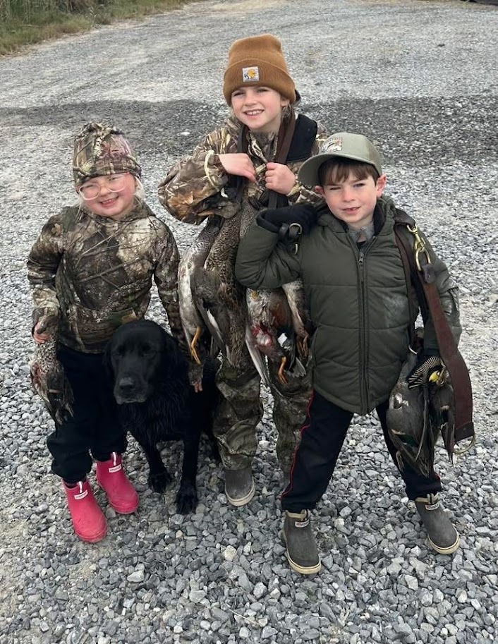 Subject – Proud cousins, Calla, Klara, and Cooper, duck hunting north of Creole. - Third Honorable Mention – Two Hardworking Fellas – submitted by JoDee Roberts